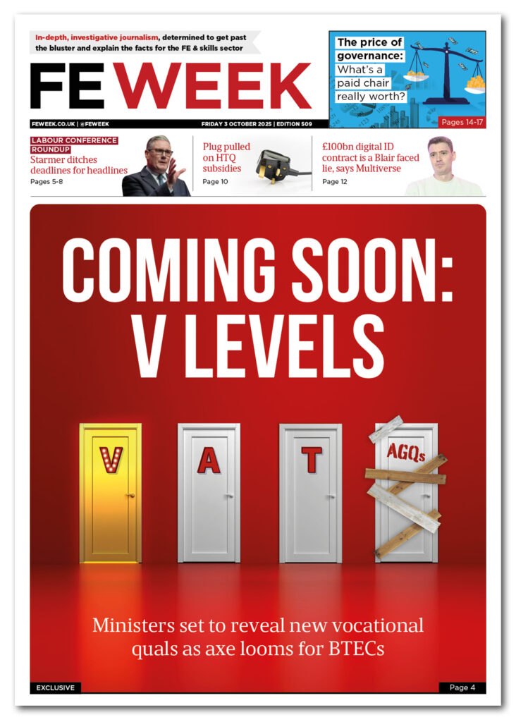 Meanwhile, young people have V Levels to look forward to. First revealed by FE Week and later confirmed in Becky Francis’s curriculum and assessment review, the latest iteration of vocational qualifications ends years of rows over the future of BTECs (RIP) and hopefully fills the applied general qualification-shaped gap left by T Levels.
