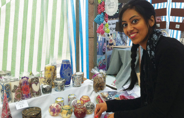 A young designer is turning traditional body art and the skills she learned at college into a thriving gift business. Inspired by traditional Indian mehndi, or henna tattoo designs, former Cleveland College of Art and Design HE textile and surface design student Ambreen Iqbal, 23, has created a range of home decorations and wedding gifts. “The designs are so versatile they can be adapted to anything,” said Ambreen. Ambreen’s business is called To Gift. She is selling her creations at craft and wedding fairs, markets, house parties and online at facebook.com/togiftuk.”I’m always working just to keep up with demand,” she said. “CCAD really gave me the confidence and skills to succeed and I’m so proud of what I’ve achieved.” Featured image caption: Ambreen Iqbal aged 23, with her a stall of her creations