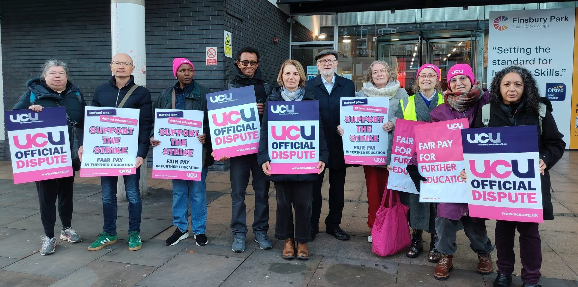 Strikes at three colleges have been called off after teachers agreed to pay awards of between 4 and 7 per cent. Thousands of University and College Union (UCU) members had voted to down tools this January over pay, working conditions and a demand for national pay bargaining. But lecturers have in recent days settled their disputes at Lakes College, Runshaw College and York College. It means 30 colleges are left facing strikes on January 14, 15 and 16, when several vocational and technical exams take place. UCU opened a nationwide ballot in October after the “disappointing” 4 per cent pay rise recommendation from the Association of Colleges earlier this year. Union members at 33 of the 54 balloted colleges passed the legally required 50 per cent turnout threshold and backed strike action, demanding pay parity with school teachers, a national workload agreement and binding national bargaining. Twenty-one colleges failed to meet the threshold, and now 20 colleges have settled their disputes with deals worth up to 8.7 per cent. Staff in the north step back… The strike at York College was called off shortly after the ballot results were published in late November. Members accepted a 5 per cent pay award, as well as joint negotiations over workload for 2025-26. An agreement for a 7 per cent pay rise at Runshaw College, in Leyland, Lancashire, shortly followed. UCU and Unison members, who represent non-teaching FE staff, will see their pay packages rise in line with sixth-form workers in the new year. Clare Russell, Runshaw College principal, said: “This uplift brings the top of the main teacher pay scale to £51,714, aligning salaries with those in sixth form colleges, first achieved when we introduced our current teaching staff pay scale in 2023. “This award has been made possible through strong financial management, buoyant student recruitment and efficient curriculum planning. More than 80 per cent of our income comes from 16- to 18- provision, an area that has benefited from increased national investment. “We recognise that many colleges rely far more heavily on adult funding, which has been constrained for many years, and we fully support the sector’s national campaign for improved investment in adult education.” The latest agreement, made earlier this week, was a 4 per cent salary increase for teachers at Lakes College, in Workington, Cumbria, backdated to August. Chris Robinson, UCU northern representative, said staff had voted to strike through “frustration” that no pay offer was on the table before the national ballot. “Lakes College only put something on the table just as the ballot was about to close and just as we got over the threshold,” he told FE Week. Mark Fell, principal of Lakes College, told FE Week that discussions on workload agreements were ongoing. Jo Grady, general secretary of UCU, said: “We have now resolved our dispute at 20 colleges and, to avoid disruption on campus come the New Year, leaders at colleges where we are still in dispute need to make meaningful offers and show they value their staff.” …but strikes go on in Capital City College staff at Capital City strike over pay workload and bargaining Meanwhile, FE and sixth form staff at Capital City College (CCC) walked out this week as tensions with senior management escalated over pay and “ripped up” legacy sixth form conditions. UCU and NEU members, who represent around 60 sixth form lecturers at CCC’s Angel campus – formerly known as City and Islington College, conducted a coordinated two-day strike across the group’s 11 sites in London. NEU members have had 14 days of industrial action since October over CCC’s “intolerable” plans to freeze sixth-form teacher salaries for two to three years to bring them in line with FE lecturers. “For the last 30-odd years, we’ve had these conditions despite being part of a bigger further education college,” said Nick Lawson, NEU rep at CCC. “The college has unilaterally ripped those up, and we want to be returned to our national pay and conditions. “We’re marching separately but striking together.” Jeremy Corbyn also attended the picket line at the college group’s Finsbury Park campus, which is located in the MP’s Islington North constituency. Corbyn also lent his support to the UCU’s recent Parliamentary lobby efforts to seek a reversal of adult education funding cuts. Meanwhile, UCU rep Mustafa Turus said the union’s branch had sought additional industrial action before the end of term. Members rejected a pay offer of 4 per cent, a 4.5 per cent rise for those on a salary of £25,000 or less, and a one-off payment of £200-250 for those earning £34,000 or less. Leaders also offered to set up a workload committee, which Turus said was not a tangible solution. “We cannot wait months and months, if not years, for a workload committee to come to address our urgent concerns,” he said. CCC declined to comment.