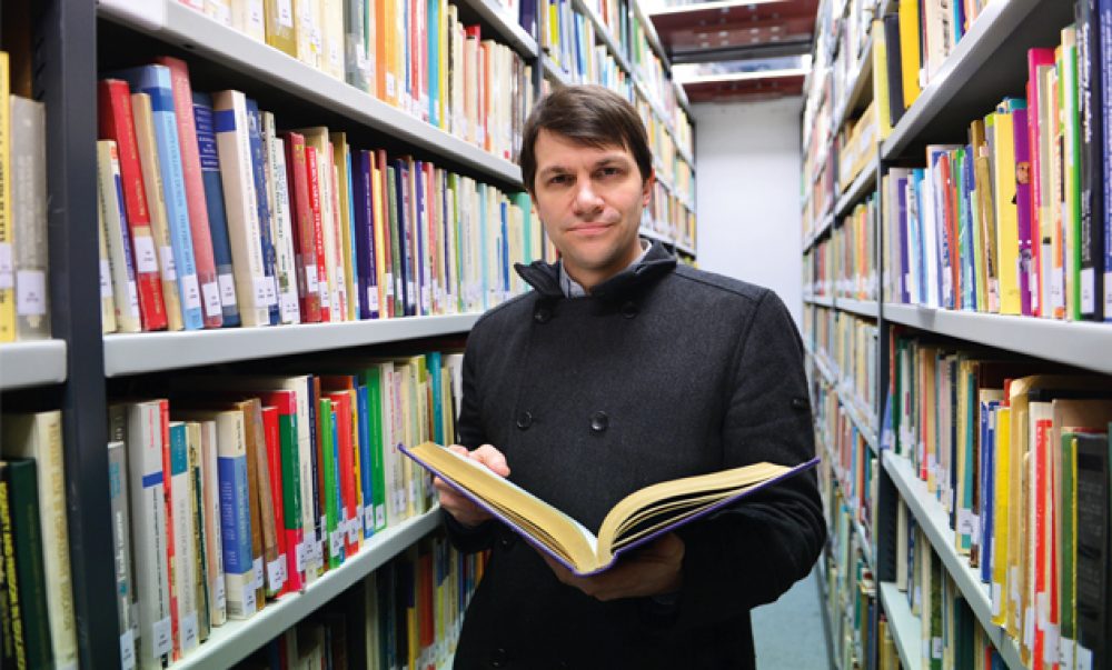 Main pic: Reporter Paul Offord in the Institute of Education vaults checking out a book from the Coombe Lodge Collection