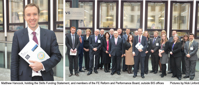 The Chancellor’s Autumn Statement, which announced £270m of new capital money for FE, has been celebrated as a “big win” for ministers and FE. The pledge of extra capital funding, when added to existing resources in 2014-15, will deliver a total of £550m for college buildings over the next two years, according to the Department for Business, Innovation and Skills (BIS). The figures, especially in times of austerity, are “a clear demonstration of the clout that both the Secretary of State, Vince Cable, and Minister for Skills, Matthew Hancock, have across Whitehall”, according to sources close to the government. The source added: “The news was a big win for BIS and for FE.” The future of the Skills Funding Agency (SFA) also appeared secure, despite earlier suggestions the government would transfer its budget to the Local Enterprise Partnerships (LEPs), as recommended in Lord Heseltine’s Plan for Growth. While the agency will maintain management for the majority of the skills budget, it was confirmed that LEPs will take a leading role in managing the Employer Ownership Pilot and priorities for European Social Funding. On releasing the Skills Funding Statement 2012 – 2015, the Skills Minister told FE Week: “The SFA will continue — as it says in the document.” And he said of the National Apprenticeship Service (NAS), which was not mentioned in the funding statement: “They will continue to have a very important role.” The Association of Colleges (AoC) welcomed George Osborne’s speech as a “clear note of confidence in colleges”. Chief executive Martin Doel, said: “The Autumn Statement recognises the importance of the sector to the economy, the local communities each college serves and, most importantly, to the students educated each year. “This investment will allow colleges to continue to update their estates, helping them to deliver continuing high standards to their students, communities and industry partners.” Responding to the Skills Funding Strategy, David Hughes, chief executive of NIACE, said: “The news that, overall, the revenue funding has not been cut further than planned is welcome. The new injection of capital into FE colleges will have a quick and direct benefit to learners across the country, as will the funding of modern equipment.” Lynne Sedgmore, executive director of the 157 Group, welcomed the increased influence of LEPs. Commenting on the recommendation that colleges should be represented on LEP boards, she said: “Many of our colleges are already closely involved with LEPs and, if anything, it would have been good to see the relationship firmed up as more than a recommendation.” Our key points and plans from the Skills Funding Statement 2012-2015 Total teaching and learning budget £3.236bn in 2012-13, £3.155 bn in 2013-14 and an indicative £3.202 bn in 2014-15 Extra £270m capital funding (new money), making £550m for college projects operational by September 2015 Local Enterprise Partnerships will be able to bring employers together to bid for Employer Ownership Pilot funding and with SFA set priorities for ESF funding Consult on the introduction of Chartered Status for providers proposal is that colleges would need to demonstrate that they have reflect LEP/S priorities in their plans Work with the DWP on measuring job outcomes, with a view to future incentive funding schemes Lead a review of the post 19 Qualification and Credit Framework Employer Ownership Pilot now £340m extended to 2015/16, following £90m redirected from elsewhere FE course outcomes to be available through the Key Information Sets (like universities) Publish course /vocational/sector data based on how much learners might earn when they qualify Work with UKCES on a review of the National Occupational Standards Subject to the pilot outcome, introduce skills gain (distance travelled) for English and Maths funding in 2014/15 Plans to publish proposals for a Traineeship model of pre-employment training ‘shortly’ ———————————————————————————————————————————————– A relatively good day The Autumn Statement could have gone either way. FE’s new minister was formerly an adviser to the Chancellor so would he help swing the axe or use his relationship to soften the blow? When the Treasury announced £270m of new money, and an overall 2.8 per cent increase in total Government spending on further education and skills, we had our answer. This capital investment is a vote of confidence in our colleges, and for that the new minister should be commended. I know FE and Skills is still having to swallow the deficit reduction pill, with a top line real term reduction in funding of 25.1 per cent by 2014-15. Ok sure, the extra £270m does not anywhere near meet past capital budget plans for FE. And the new strategic role of Local Enterprise Partnerships will present challenges (although it’s better than Heseltine’s proposal to just hand them the funding and systems). But all-in-all, in the current climate, it was a relatively good day for FE and skills. Nick Linford, editor
