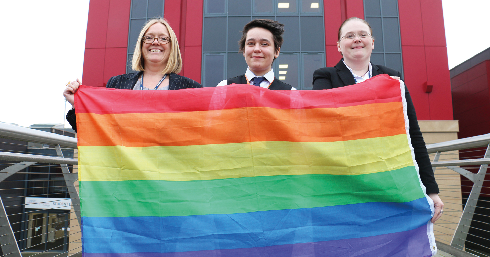 Main image: (L-R) Louise Knott, Alex Belcher, chair of student LGBT network , and Jane Hawksford, chair of staff LGBT group
