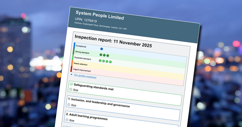 Carlisle-based independent training provider System People Limited was deemed ‘exceptional’ for its work with logistics-related skills bootcamp programmes, in an inspection outcome published this week.