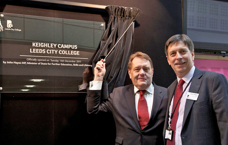 Leeds City College welcomed a parliamentary visitor as the skills minister called into its flagship campus. John Hayes MP, minister of state for further education, skills and lifelong learning, paid a special visit to the college’s new Keighley Campus on Tuesday and took a tour of some of the on-site facilities, meeting staff and students. The minister was also asked to unveil a special plaque to officially open the campus. He said: “I am delighted to be visiting the new Keighley Campus. “There is a real sense of achievement here – the significance of a new building in helping to improve the town and the people who work in it, teaching and learning.” Principal Peter Roberts said: “It was a great privilege to have John Hayes come to visit our flagship campus, which is a place of great achievement in terms of educational opportunities and community impact.”