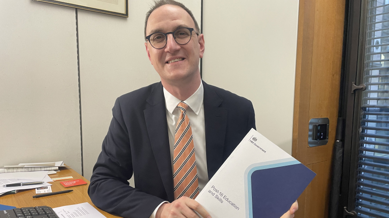 The Lib Dems are the only opposition party that have put education at the centre of their agenda. And Sollom is well-versed in the FE sector’s challenges. The skills white paper sits open on his Westminster office desk as I enter the room. He proudly claims to have read every page, as well as “putting it into AI” to “probe little bits”.