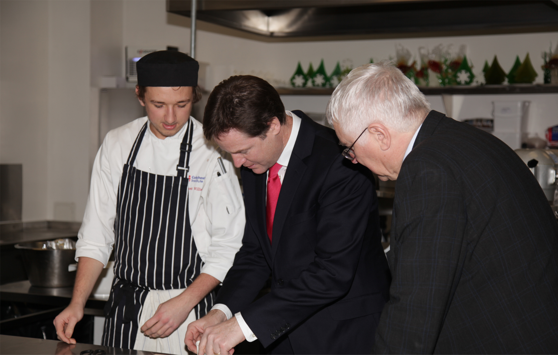 The Deputy Prime Minister helped put the icing on the cake when visiting the Colchester Institute to set out plans for the new Youth Contract. Nick Clegg visited the institute last month where he set out the government’s commitment to getting all young people earning or learning. While on the visit, he met with students, staff and business leaders as well as taking time to watch a cookery lesson first hand. The visit follows the unveiling of the Youth Contract – a government package of £1 billion to provide unemployed young people with more opportunities including apprenticeships and work experience placements. Mr Clegg said: “Colchester Institute is giving thousands of students the opportunity to develop their skills and talents, not just in the classroom but together with real-world employers. We want to make sure that when students leave education they have the best chance to make a successful transition into the world of work.” Danny Clough, principal of Colchester Institute, said: “We were delighted to welcome the Deputy Prime Minister and share his determination to provide students with the best possible range of skills to succeed in the workplace.”
