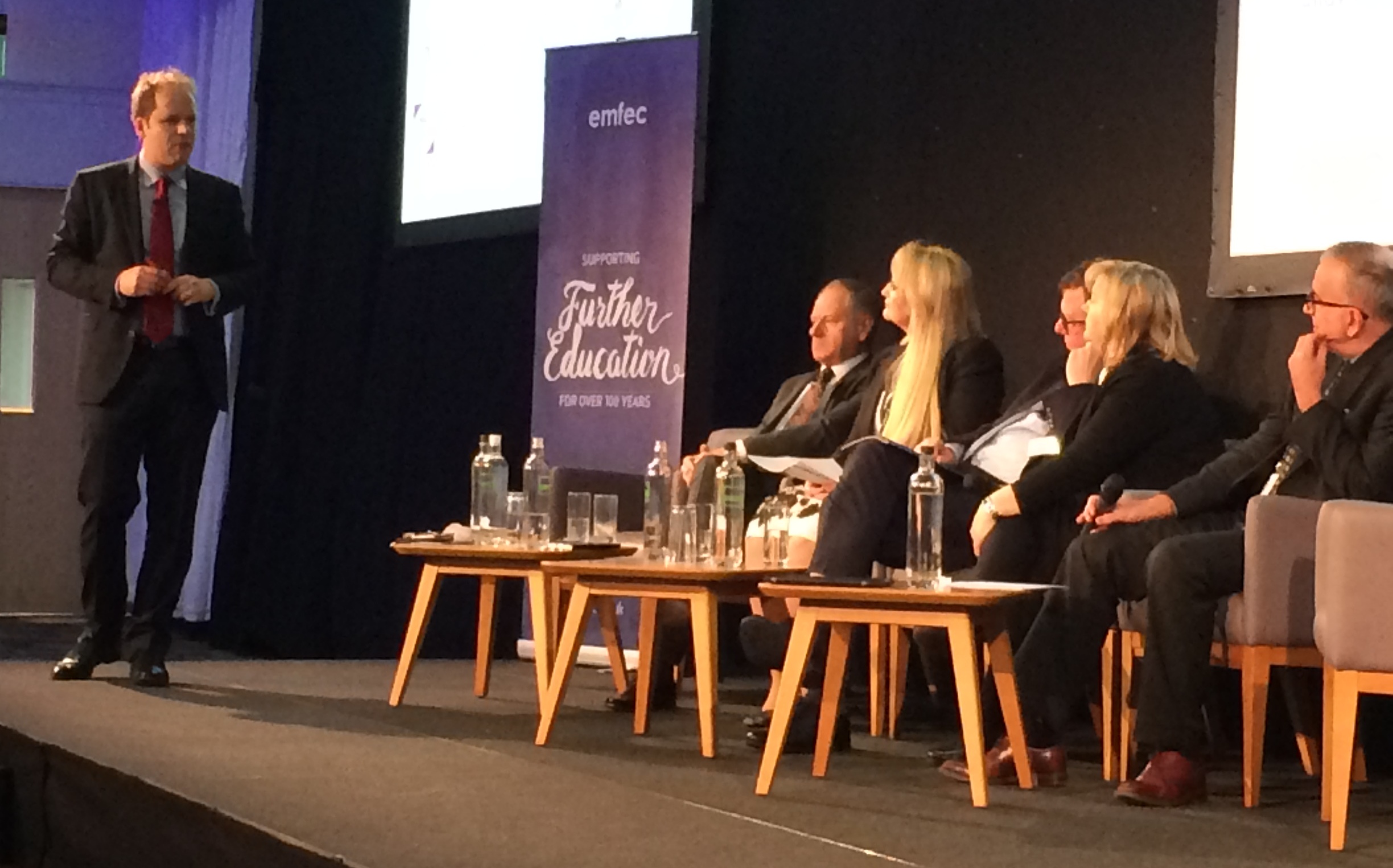 One college principal expects the number of colleges in England to drop by a third over the next two years, FE Week can reveal. Stuart Cutforth, principal and chief executive of Chesterfield College, raised the issue in a speech at the 2016 emfec conference in Nottingham today (February 7), saying that he expected college numbers to drop to 200. Mr Cutforth spoke about his experiences of leading Chesterfield College through the first wave of the government’s post-16 education and training area based reviews, at emfec’s ‘Innovation in FE – Embracing Devolution’ conference. He said his college’s review had started in September 10 and should have finished last week, but is not yet complete. He described a process of “speed dating” over three and a half months, during which the nine colleges in Sheffield City region – all of which are rating ‘good’ or ‘outstanding’ by Ofsted – were encouraged to look at working collaboratively together. Stuart Cutforth principal and chief executive Chesterfield College “It feels like Apocalypse Now,” he said of the process. “These are unprecedented times for FE, makes no bones about this, this is real, this is going to happen and we need to embrace it. Whether we like it or not, area based reviews are here to stay. “We have got radical restructuring brought upon us by political intervention … This is the biggest change for 22 years, it is serious,” he said. Mr Cutforth observed that since 1993 the FE sector has “lost a third of our colleges”, and said he predicted the number of colleges in England would drop down to 200, possibly by 2017. “If you sit and wait for the FE commissioner to sort this out, you will lose. Get on with it and find some solutions for yourself,” he advised the emfec conference audience. He added that merger did not have to be the only option. “I know colleges fear that word. I’ve merged a college, I’ve stopped a college from being merged – I know the difference. “The merger of my college in City College Birmingham with South Birmingham saved about £200,000 – that’s it, that’s all. That won’t work on its own,” he said. Nick Linford, FE Week interim editor and chair of the event, then pressed the other FE experts taking part in the morning’s ‘Creating Innovation in the Skills and Education Sector’ panel discussion (pictured above), to give their views on the future for college numbers. The panel all said that the number of colleges was likely to fall as a result of changes brought about by the area review process. Andy Wilson, Principal of Westminster Kingsway College and chief executive designate of City and Islington and Westminster Kingsway Colleges, agreed with Mr Cutforth that the number of colleges could drop by a third to 200. Melanie Ulyatt, regional chairperson for the Federation of Small Businesses predicted 243 colleges over the next two years, while Mark White chair of the Association of Colleges Governors’ Council, expected 253 and Jo Lappin, chief executive of Northamptonshire Enterprise Partnership, guessed 260. Ms Ulyatt said: “I hope to think that it would be the colleges decisions, making those pathways to either merge or stay as they are,” and Mr White commented: “This rushed, under-resourced process has, nevertheless, opened up conversations between colleagues in a way like never before.” Ms Lappin said there was a need to recognise the needs of each individual area. “This process needs to be transformational – how does it drive up achievement and performance, rather than just saying we’ve got to go through a process that makes some savings?” she said. Other speakers at the event included Shakira Martin, vice president for FE at the National Union of Students, who spoke on the importance of listening to learner voice, and Nic Dakin MP, shadow schools minister, who discussed the potential impact of devolution on the FE sector.