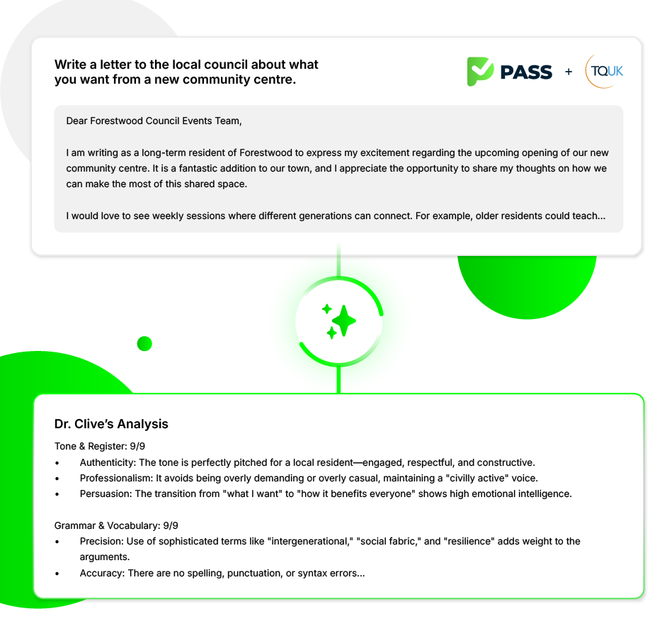 Through their partnership with TQUK, Pass has developed a digital mock assessment platform that brings together diagnostics, past papers and automated marking in one place.