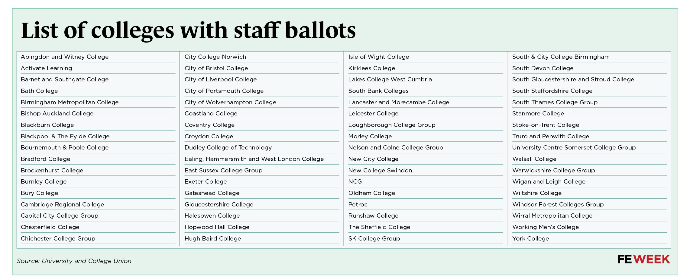 Last week, the UCU said it wrote to 76 college principals to outline its demands ahead of confirming a formal ballot.